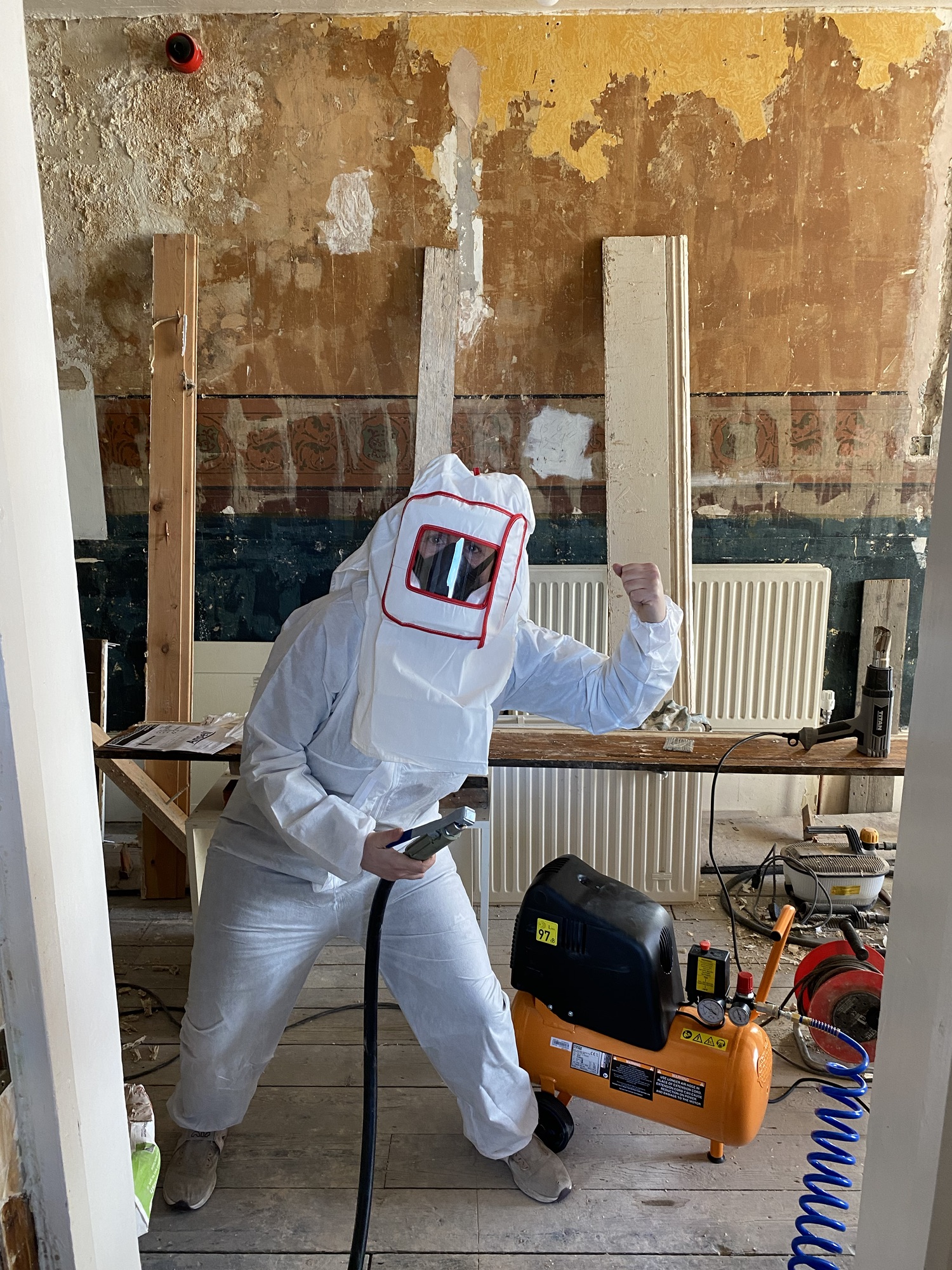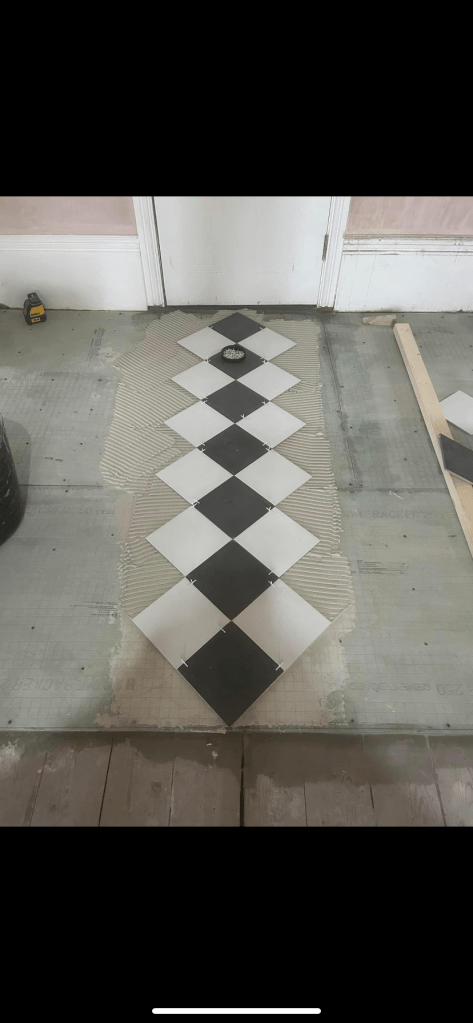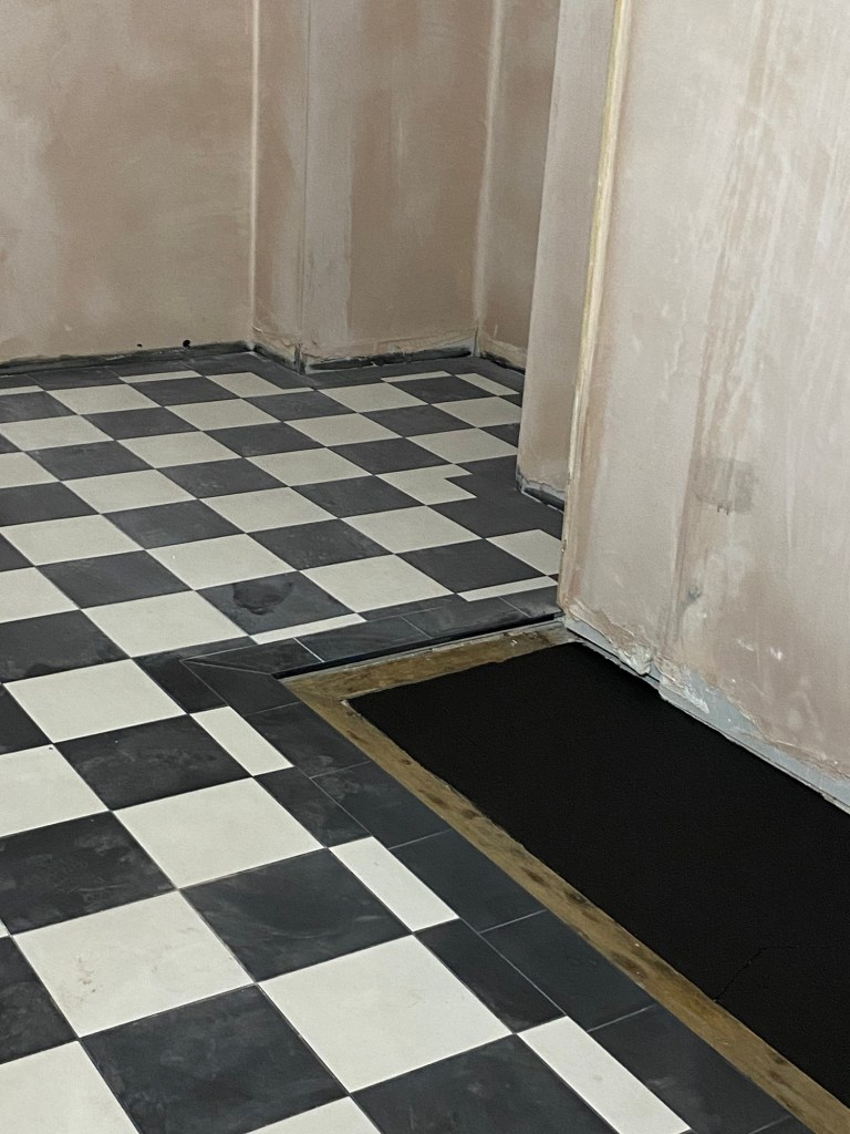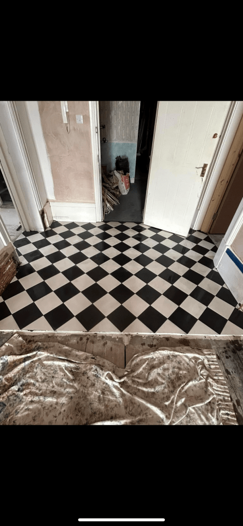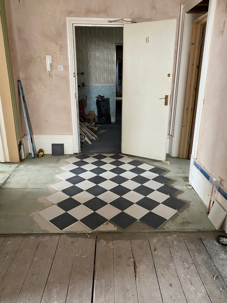 Jonny Lawton from Cleveland Quality Tiling laid the chequered tiled floor for me at the entrance. This was not only for impact, but also practicality. The utility room is entered from the tiled floor so dirty jackets, shoes, bikes can be put into this area keeping the rest of the flat clean.