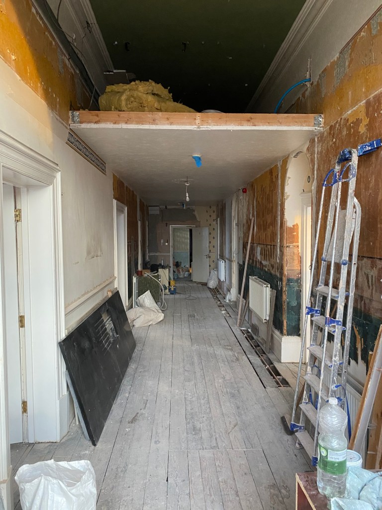 This hallway is 2.5 metres wide by 15 metres long and would have been part of the original hotel corridor when it was built.