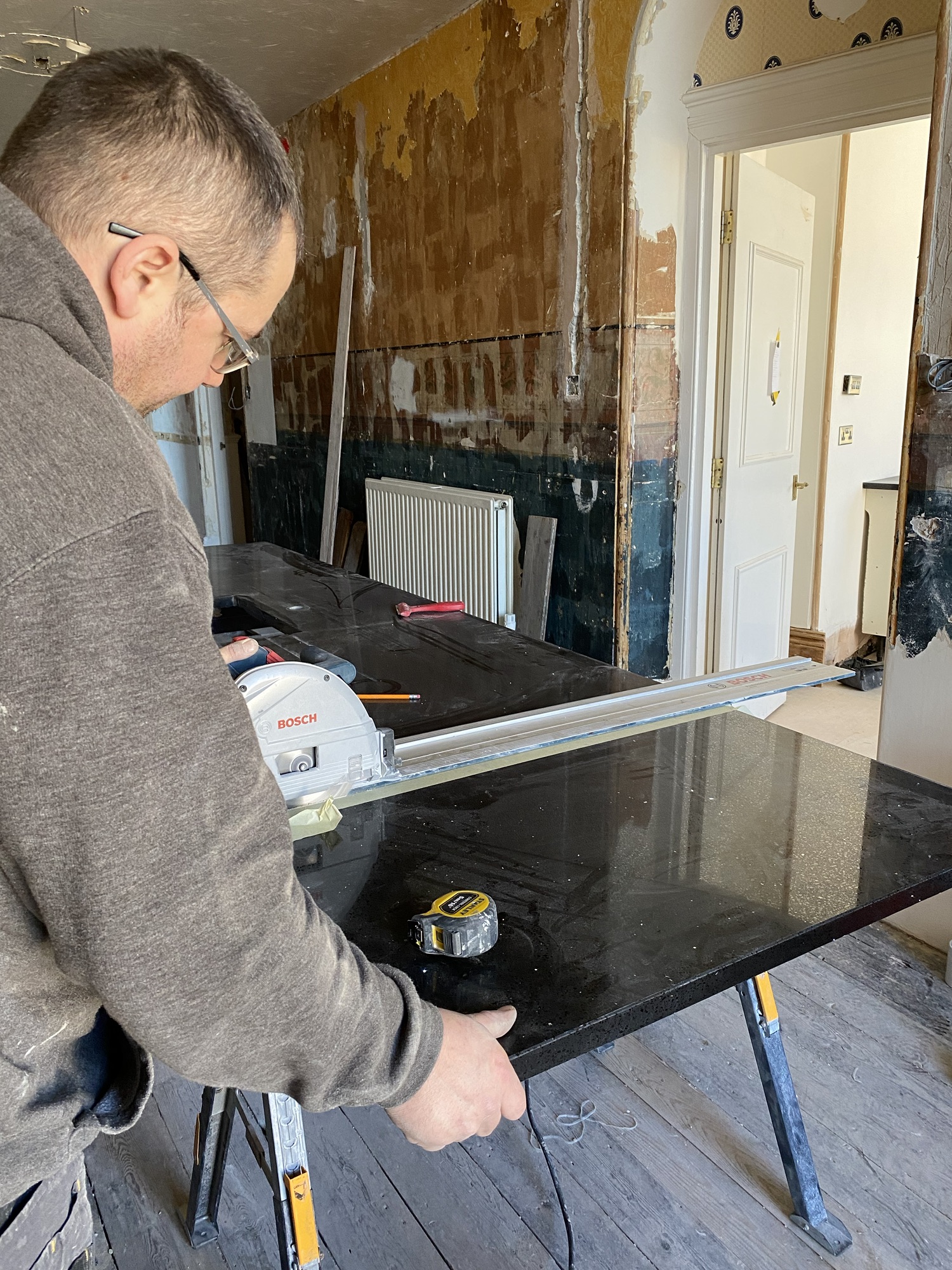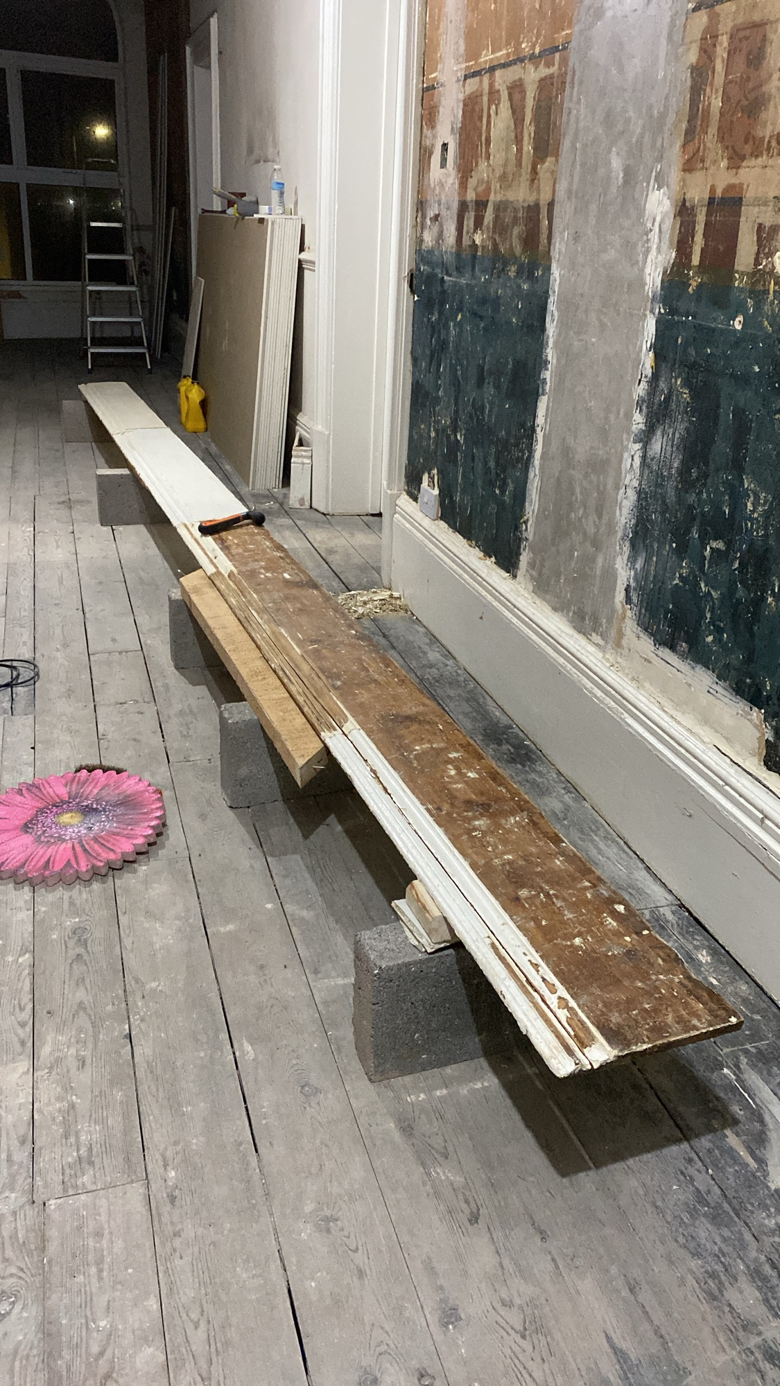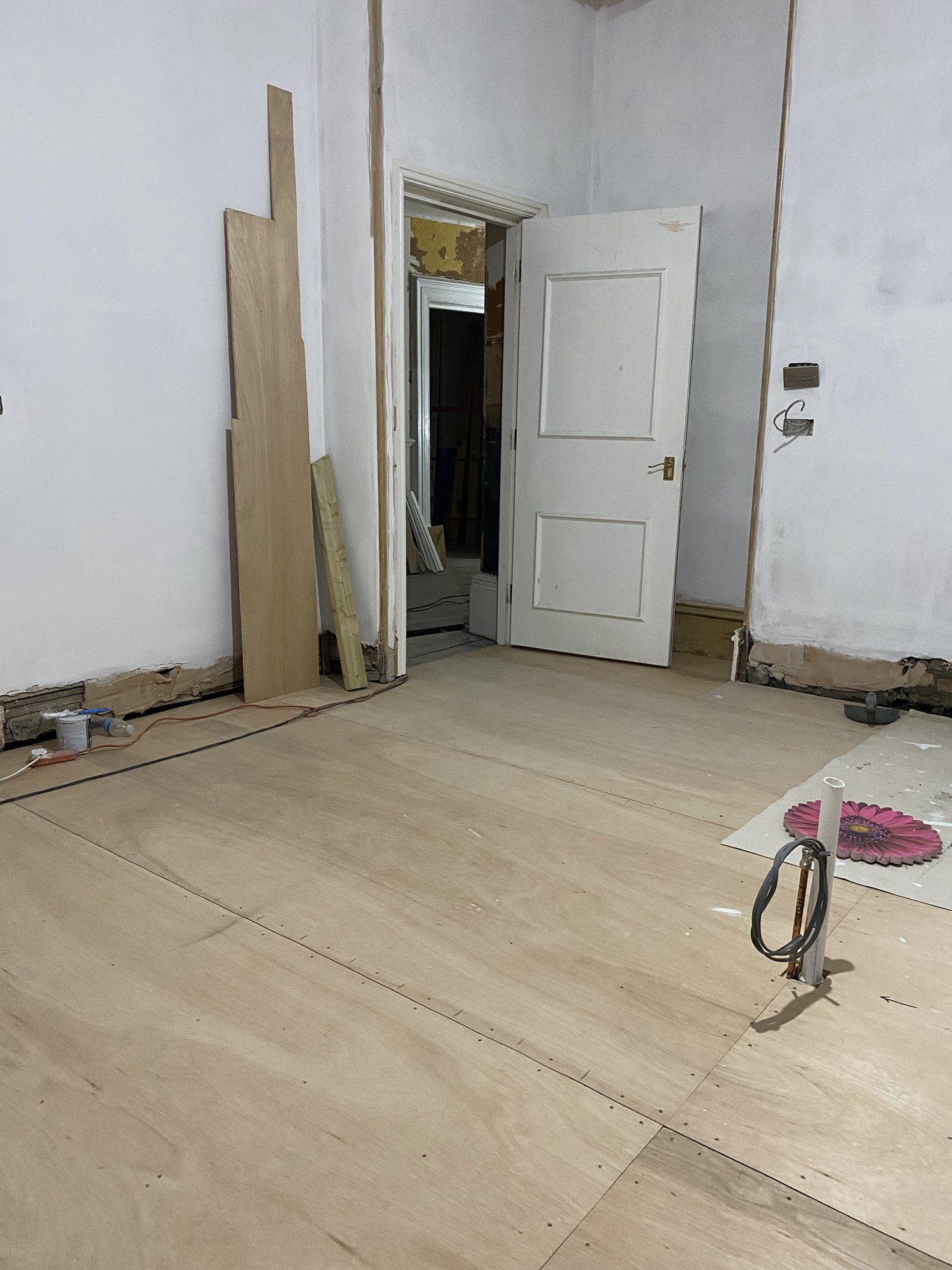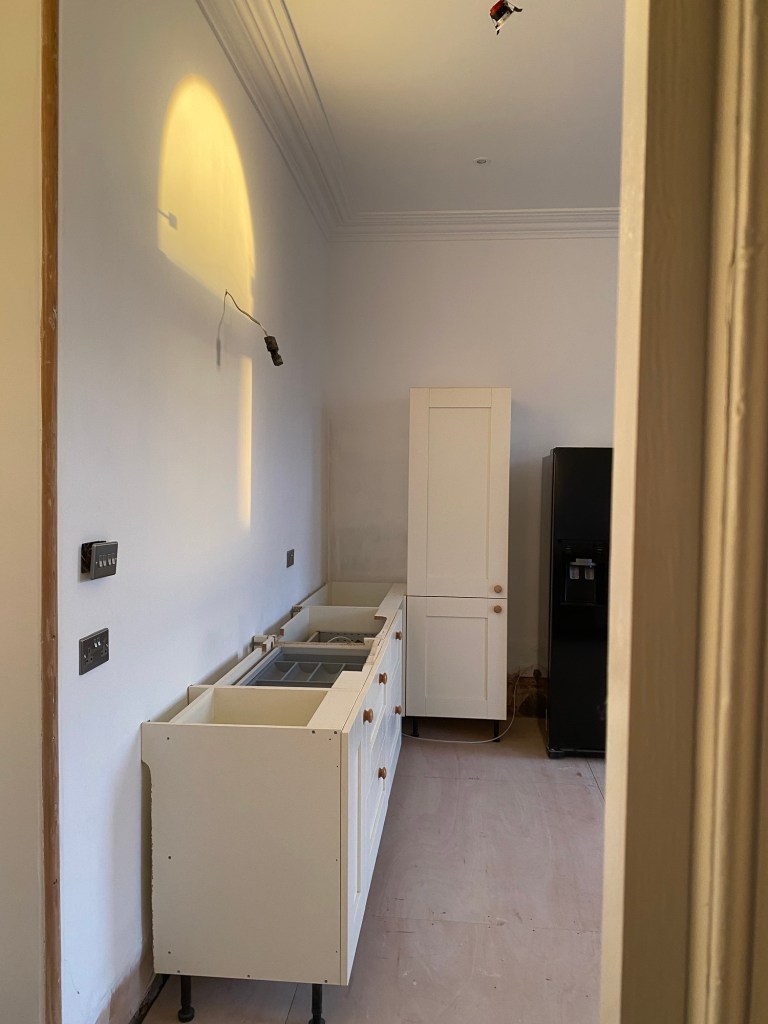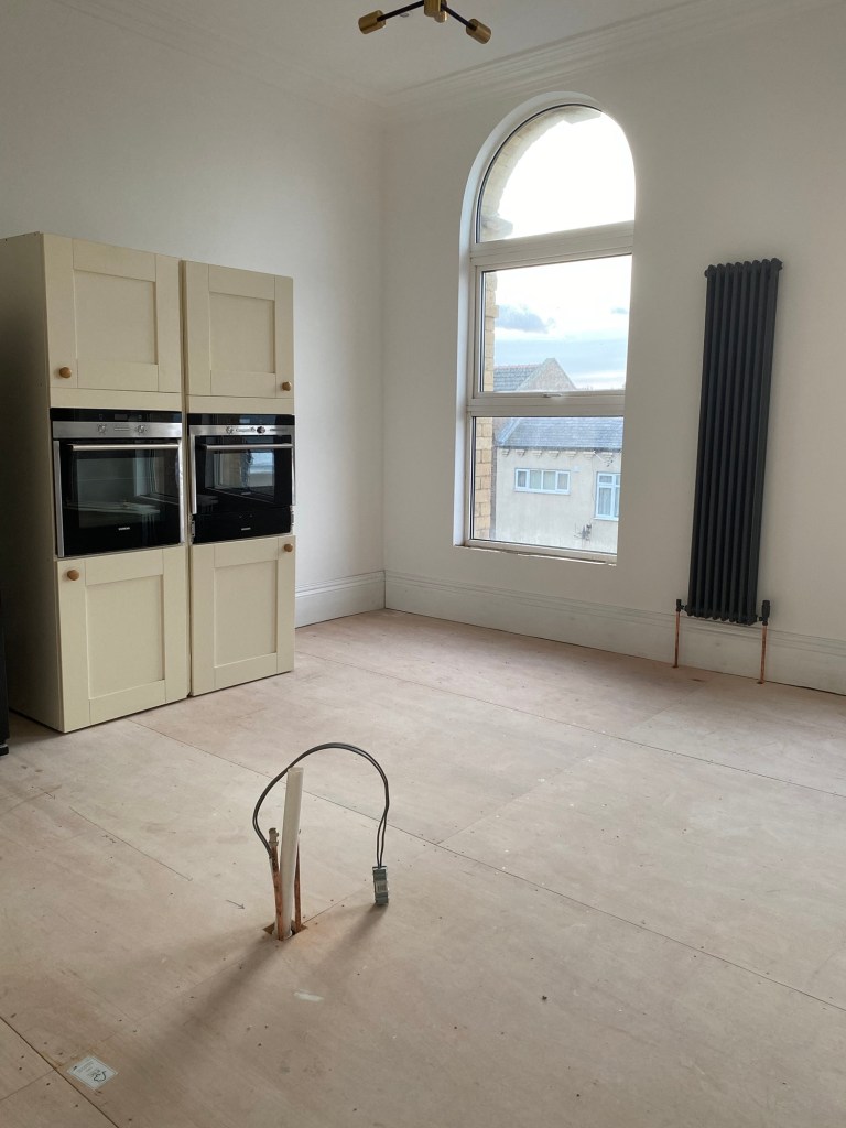 The rest of the room will be worked on today. Tiles are now removed, though a lot just fell off as soon as you touched them. All walls and ceiling will be boarded for a smooth insulated finish ready for plastering. We will complete taking out two doorways to make one large room.