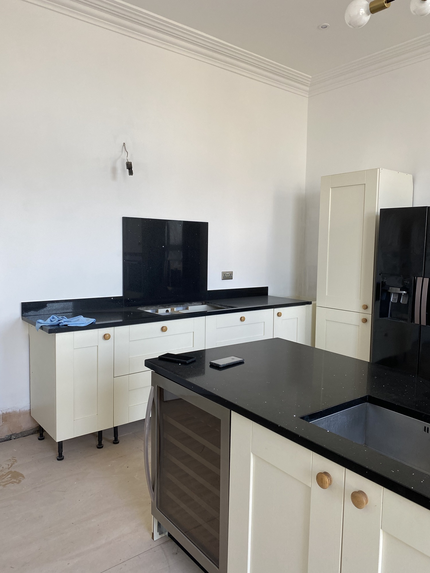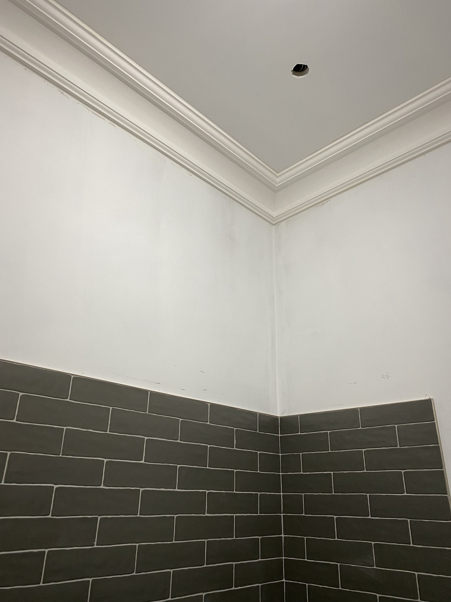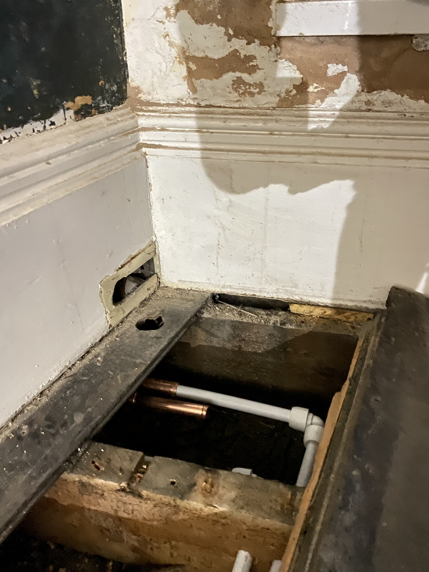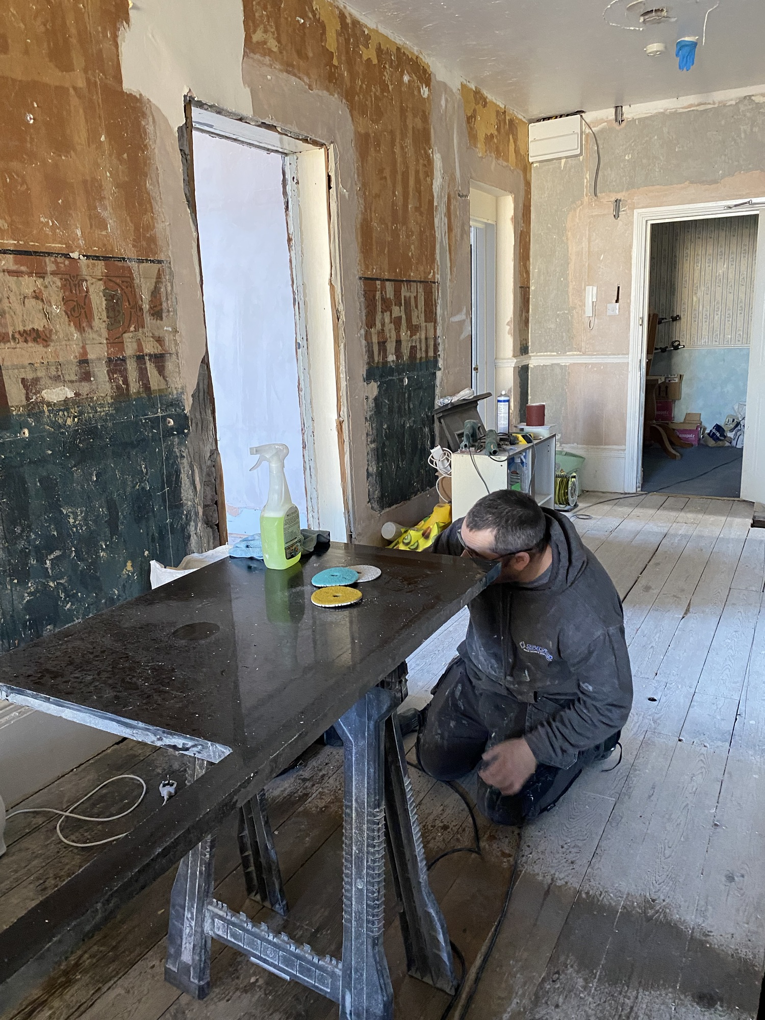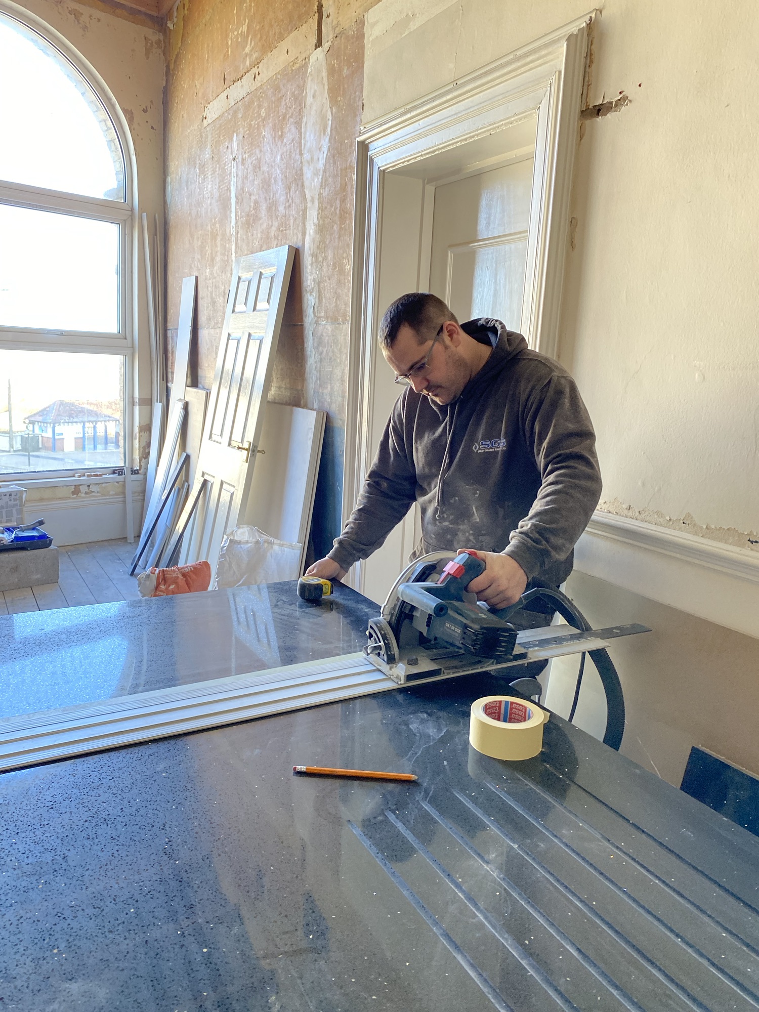 The rest of the room will be worked on today. Tiles are now removed, though a lot just fell off as soon as you touched them. All walls and ceiling will be boarded for a smooth insulated finish ready for plastering. We will complete taking out two doorways to make one large room.