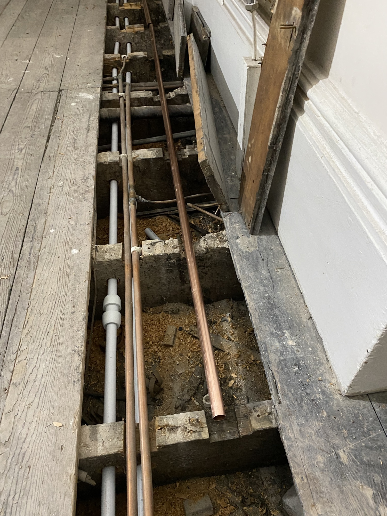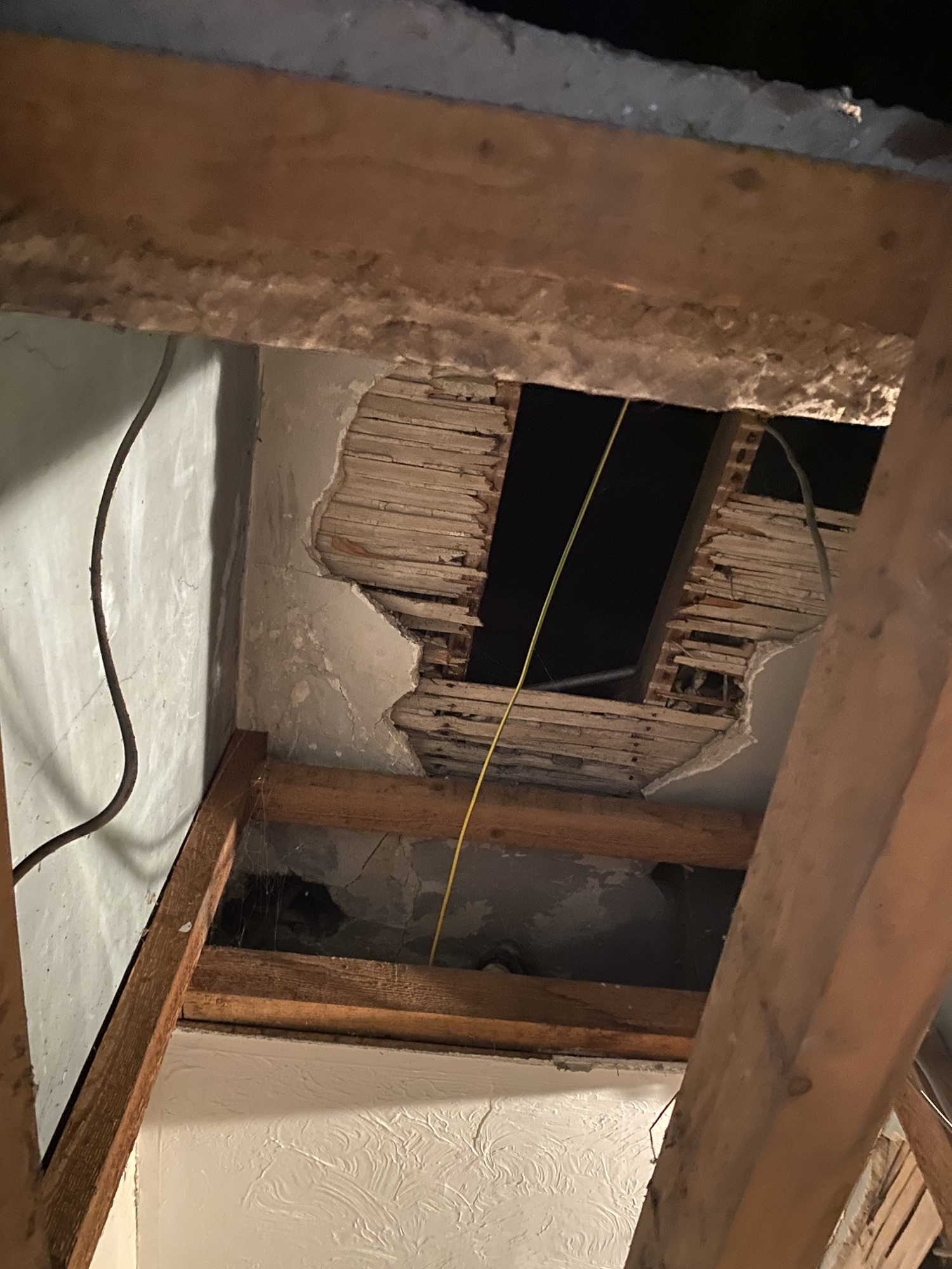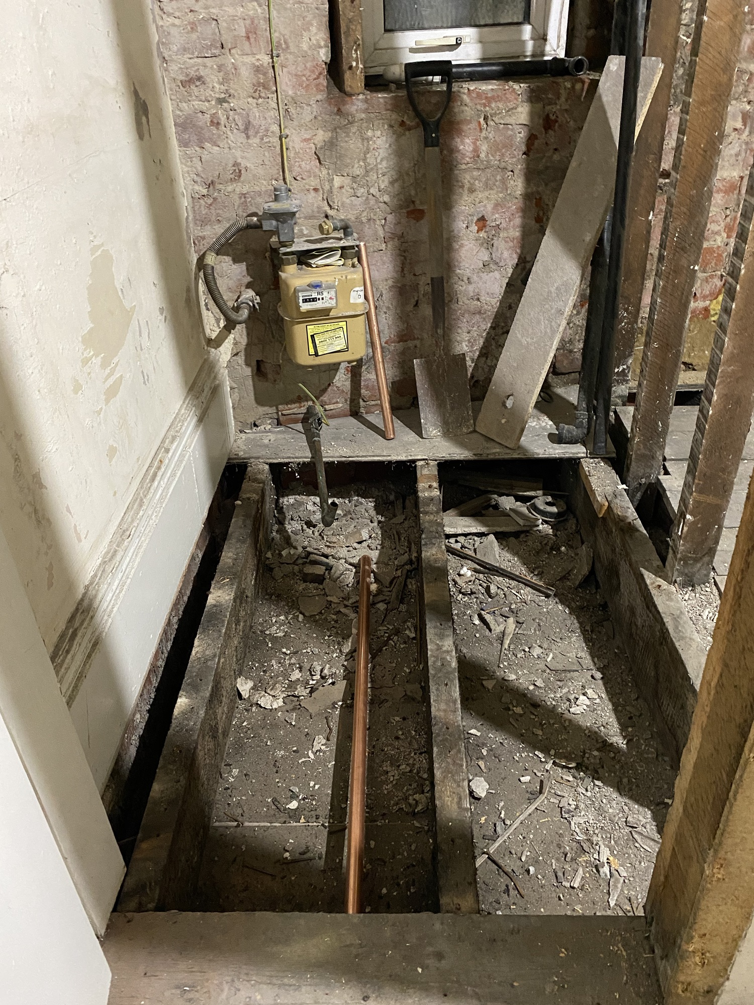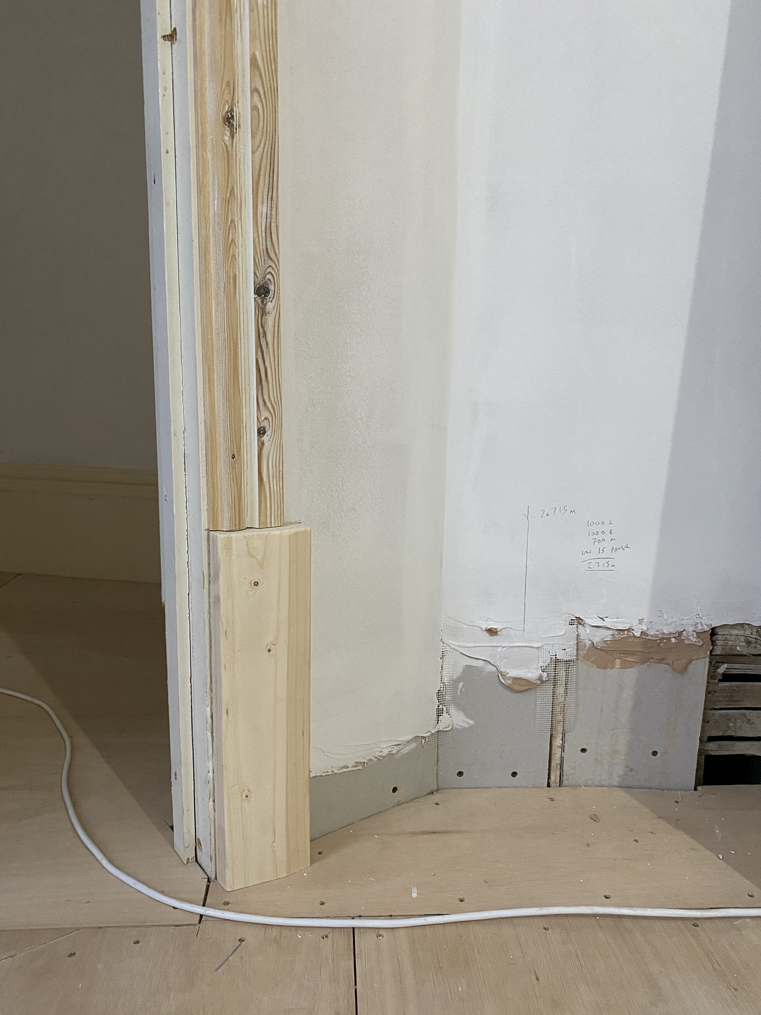 On our journey preparing the utility room we found yet another vast space in the ceiling! I’m not sure what it was for, it’s not a chimney as the brickwork is too clean. It is vast and we can’t see the top. Previous builders have cut through the brickwork to make a doorway into the space which when we bought it was a full bathroom. We have uncovered an old doorway which would have led straight onto the stairwell. This was blocked up using chipboard! Big fire hazard which had the potential to block the stairwell. So this will now be blocked correctly with pink plasterboard which is used to slow down any potential fire. They are usually used on ceilings in flats or you can double up ordinary plasterboard to achieve the same.