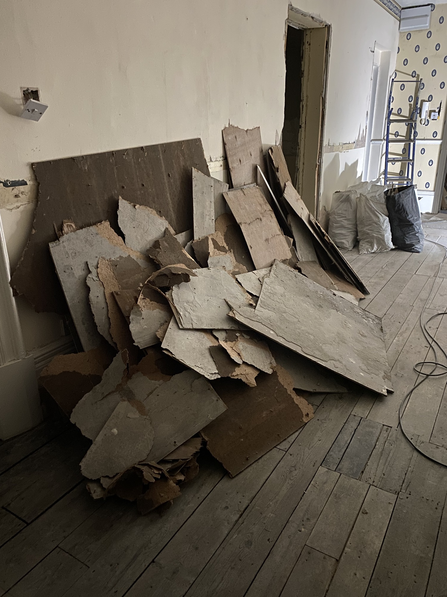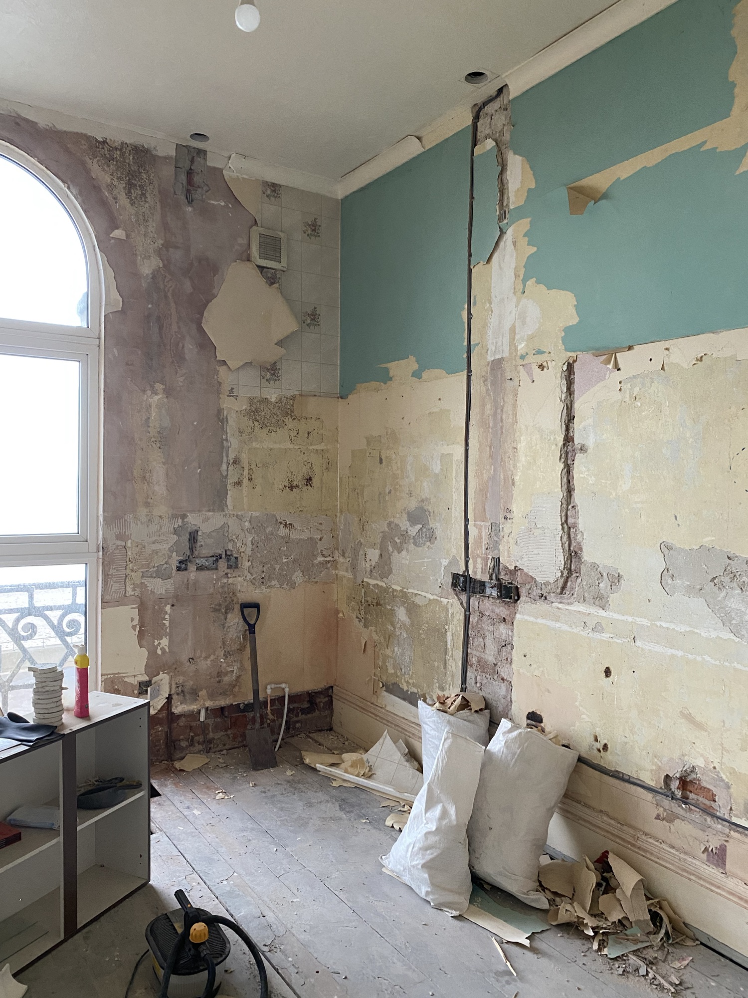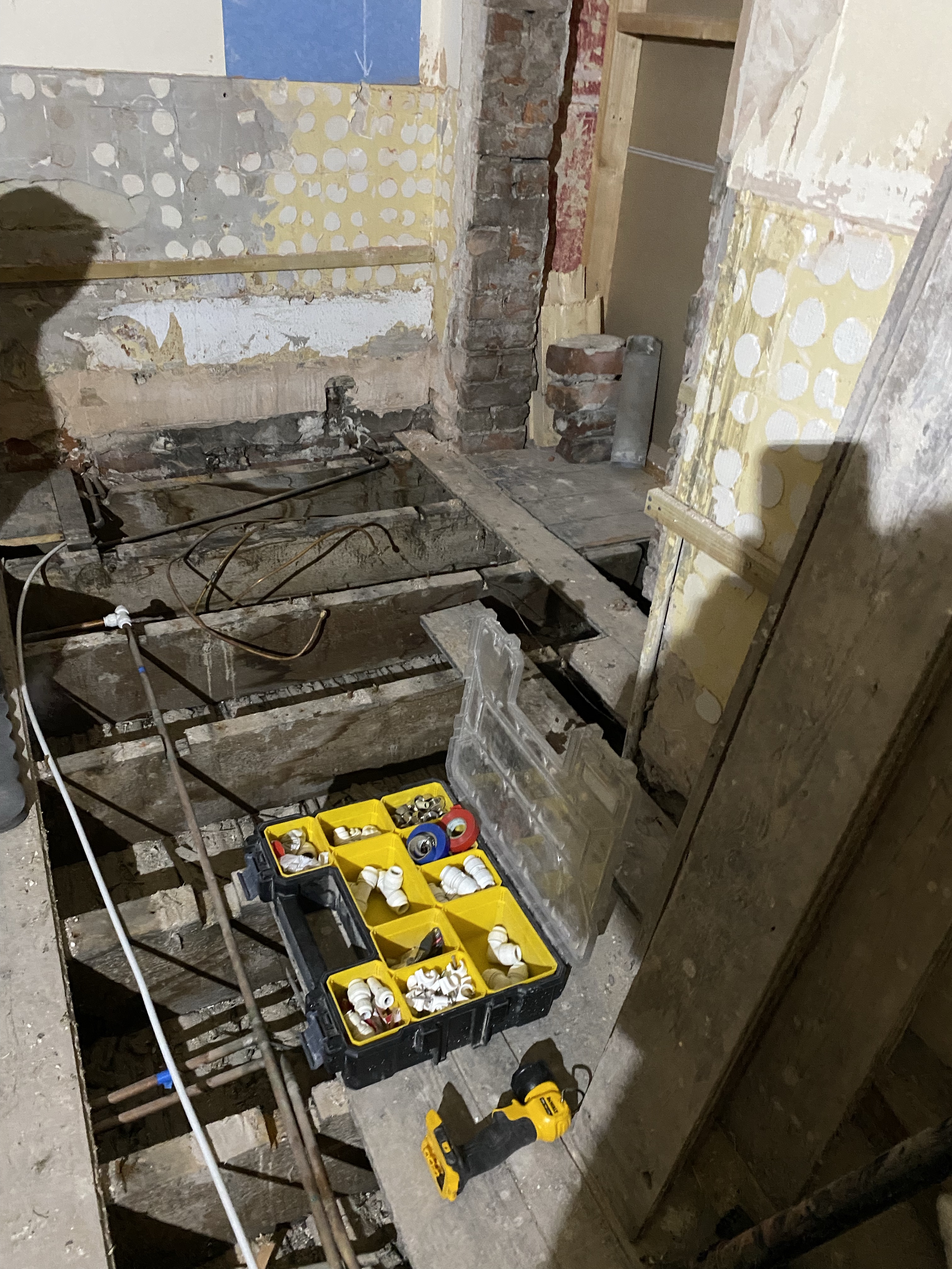 I am continuing to prepare the family bathroom for the plasterer to start doing his magic.